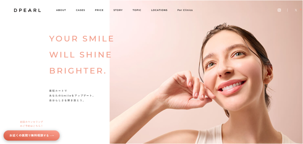 DPEARLは公式サイトのデザインが「お洒落で可愛い」と感じる方が多いようです。矯正治療の持つ堅いイメージを払拭するような清潔感のある柔らかなデザインが、「ちょっと話を聞いてみてもいいかも」という安心感につながっています。